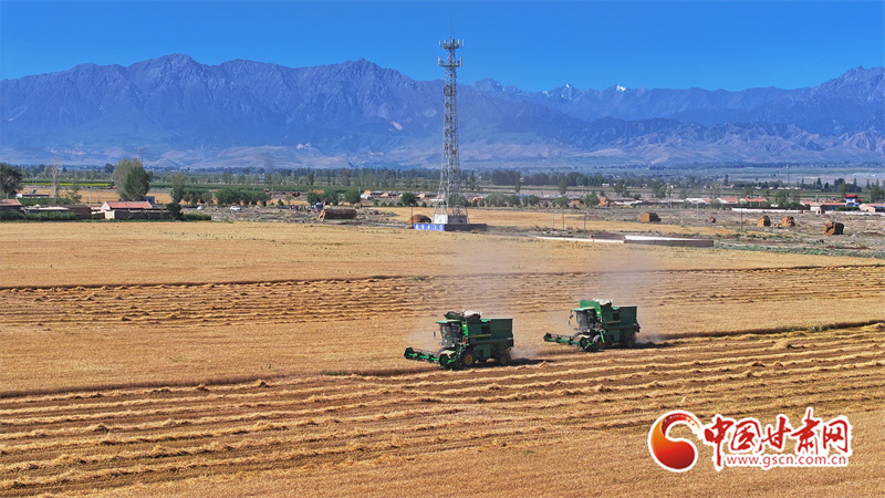 眼下,位于祁連山下的民樂縣南古鎮(zhèn)毛城村800畝連片小麥種植基地上,機聲隆隆,農(nóng)機手們駕駛收割機穿梭往返麥田之中搶收小麥,一派忙碌的豐收景象。近期,隨著民樂縣沿祁連山冷涼山區(qū)小麥迎來成熟季,民樂縣種植的26萬畝小麥進入了繁忙的收割期。