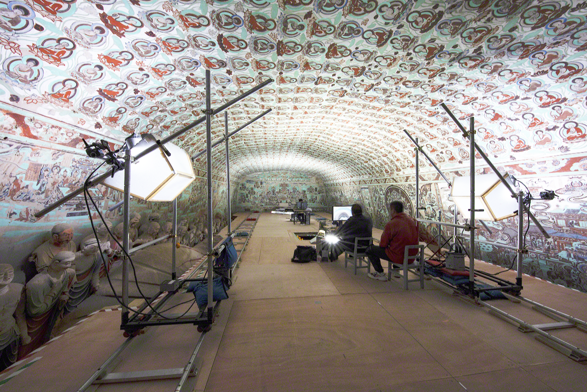 (莫高窟第148窟文物數(shù)字化采集工作現(xiàn)場(chǎng) 圖源:敦煌研究院)
