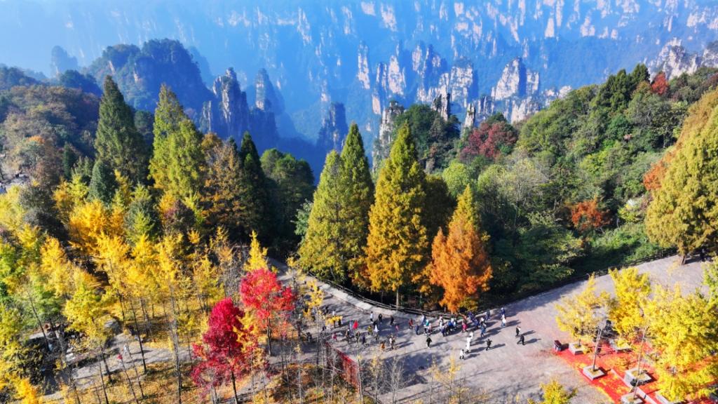 “我們將進一步做好產(chǎn)品、提升服務(wù)、培優(yōu)人才,讓張家界的秋游持續(xù)熱,也讓接下來的冬游更加火。”張家界武陵源風(fēng)景名勝區(qū)和國家森林公園管理局局長張沖說。(新華社記者 張格)