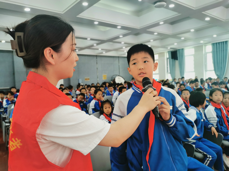 在“文明上網(wǎng)·快樂(lè)童行”主題活動(dòng)中,小學(xué)生回答網(wǎng)絡(luò)文明志愿者的提問(wèn)。蘭州文明網(wǎng)供圖