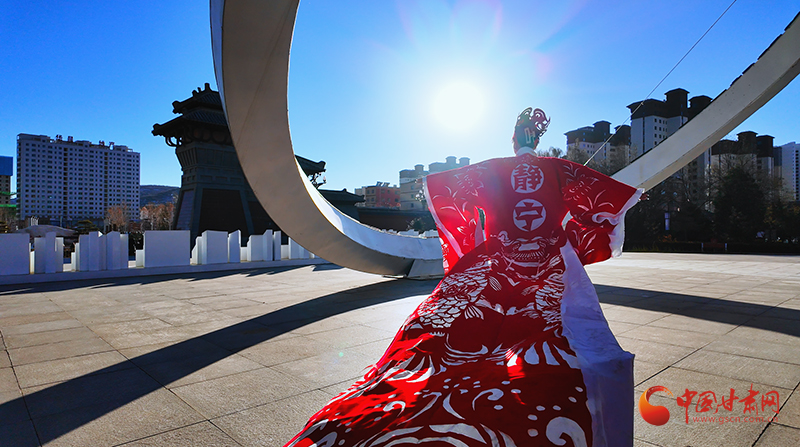 在靜寧縣成紀(jì)文化城里,兩名模特身著“盛裝”翩翩起舞,盡情展示自信與優(yōu)雅,緩緩走動(dòng)間,靜寧蘋果、靜寧果農(nóng)等元素裝飾的紅色剪紙服飾隨風(fēng)搖曳,讓國(guó)家級(jí)“非遺”——中國(guó)剪紙也流動(dòng)了起來(lái)。這精彩的作品展示,來(lái)自仇跟銀的妙手。
