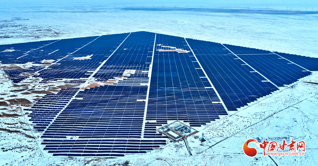 12月18日, 一場大雪過后,大漠深處的張掖市臨澤縣北部灘新能源產(chǎn)業(yè)園內(nèi),81.1萬千瓦光伏治沙光伏集陣和85萬千瓦風力發(fā)電機組群,在防沙治沙的同時將光熱和風力轉(zhuǎn)換為電能輸入國家電網(wǎng),推進了“西電東送”輸電工程建設(shè)。