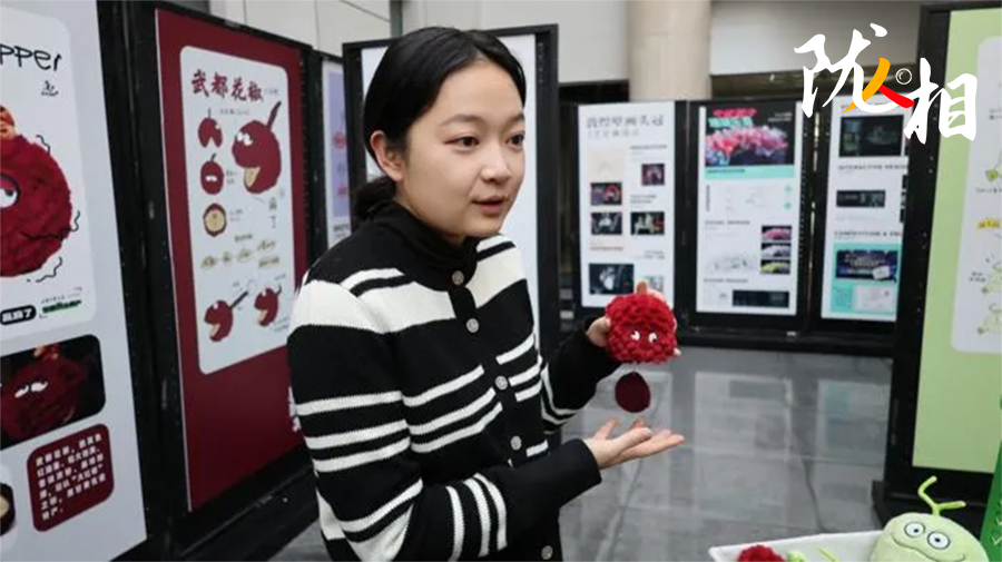 她拿起一只文創(chuàng)玩偶,輕輕拉起玩偶頂部蜷縮的細(xì)柄,這只紫紅色、毛茸茸的花椒玩偶立刻“嗡嗡”震動起來?;ń肺队X上的麻就這樣傳遞到手上,精妙的構(gòu)思,令大家會心一笑。