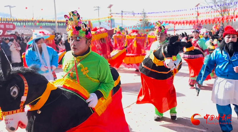 春節(jié)期間,華亭市各曲子戲班的演出由農(nóng)村的廣場到家庭院落,縣城的機關(guān)單位到大街小巷,隨處可見。曲子戲通常以吹拉彈唱、說春遛丑等角色,形成大場子、小場子、跑場子三種演唱形式,表演以極具華亭風(fēng)情的念唱、秧歌小調(diào)、獅子旱船、民間舞蹈為主。生老凈丑競相登場,文武場面與大戲不相上下,表演風(fēng)格獨特,濃濃的鄉(xiāng)土味瞬間會勾起人們對家鄉(xiāng)的熱愛之情。