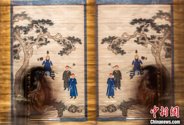 圖為觀眾從故宮博物院藏《康熙帝戎裝像》展品前經(jīng)過(guò)。中新網(wǎng)記者 侯宇 攝