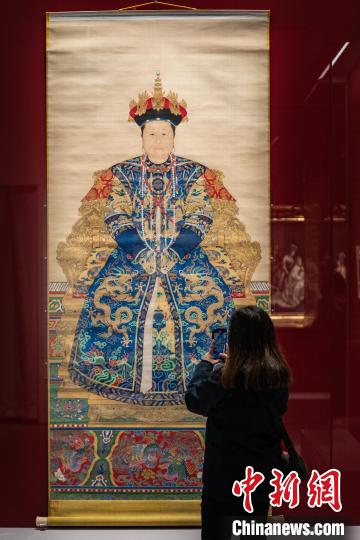 圖為觀眾觀看故宮博物院藏《孝莊文皇后朝服像》展品。中新網(wǎng)記者 侯宇 攝