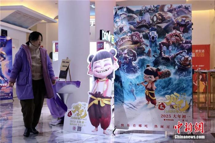 北京一家影院內(nèi)的《哪吒之魔童鬧海》海報。中新社記者 易海菲 攝