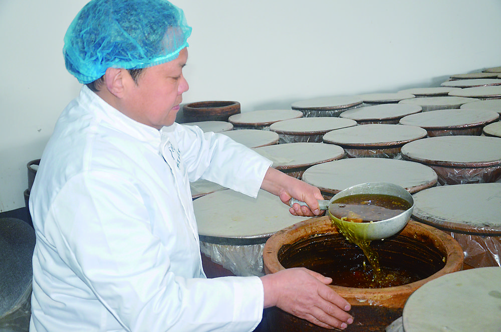 在長(zhǎng)期的釀造過(guò)程中,河州黃酒有一套獨(dú)特的傳授規(guī)程和技術(shù)要求,甚至有“傳媳不傳女”的風(fēng)俗。釀酒過(guò)程復(fù)雜且耗時(shí),尤其是對(duì)溫度、火候的把控,需要豐富的經(jīng)驗(yàn)。王建平從小在父親的帶領(lǐng)下傳承老輩人釀酒技藝,逐漸掌握整套釀造工藝流程,在父輩生產(chǎn)和經(jīng)營(yíng)的基礎(chǔ)上,繼續(xù)探索創(chuàng)新,綜合各地黃酒優(yōu)點(diǎn),取長(zhǎng)補(bǔ)短,突出河州黃酒醇厚的風(fēng)格,不斷豐富產(chǎn)品系列。為將自己的技藝傳承下去,他讓兒子王騰和幾名徒弟學(xué)習(xí),做接班人,傳承釀造技藝。
