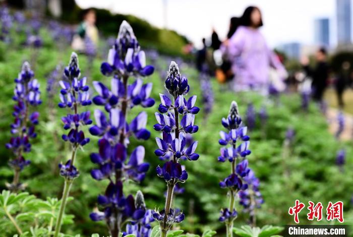 3月16日,游客在公園觀賞魯冰花。春日,福州花海公園魯冰花、小蒼蘭、油菜花等鮮花盛放,吸引了許多民眾前來漫步賞花,享受春天美好時光。中新社記者 張斌 攝