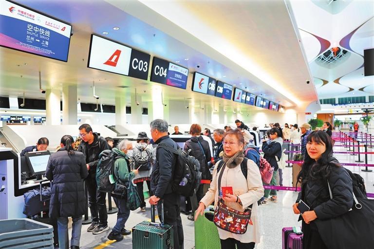 旅客在T3航站樓出港大廳柜臺(tái)窗口辦理值機(jī)。新甘肅·甘肅日?qǐng)?bào)記者 田蹊