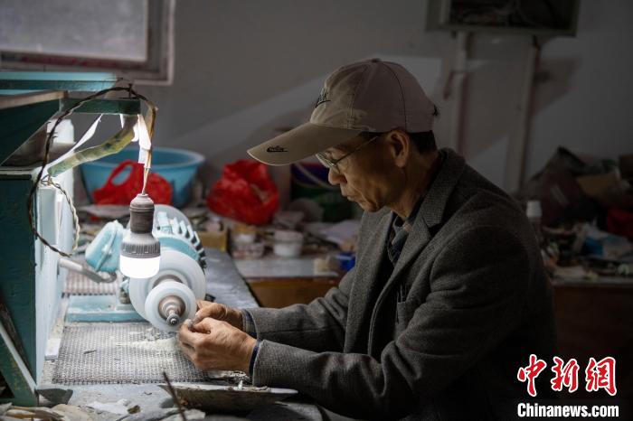 2月3日,廣西北海,林日光將貝殼打磨成所需形狀?!£惽锵?nbsp;攝