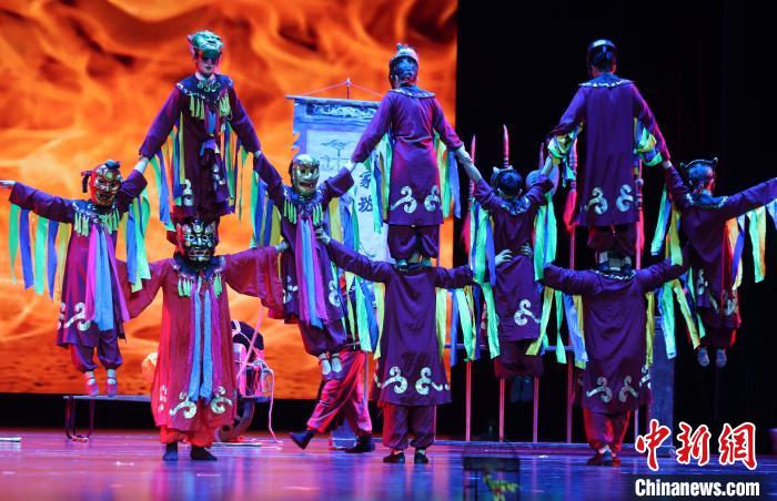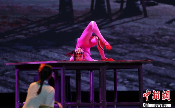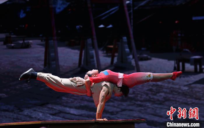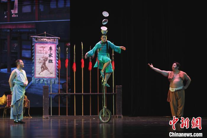 圖為飾演雜技班師娘的演員正在表演。中新社記者 劉占昆 攝