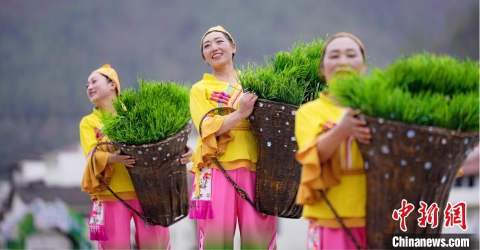 依托黎壩鎮(zhèn)層疊梯田的天然弧度與蒼翠山谷的立體聲場,該劇將鎮(zhèn)巴民歌、陜南民俗等非遺元素融入山水實景。春之序曲《山歌迎賓》中,油菜花海間百人山歌陣,以原生態(tài)多聲部民歌編織迎賓盛景;夏之華章《綠的交響》里,非遺薅草鑼鼓與現代音樂碰撞出農耕文明的力與美;秋之禮贊《金的節(jié)奏》在陽光下呈現打連枷聲浪與稻浪共舞的豐收奇景;冬之情書《紅的濃情》則通過圍爐陜南說唱,在吊爐光影間訴說巴山兒女的熾熱情懷。