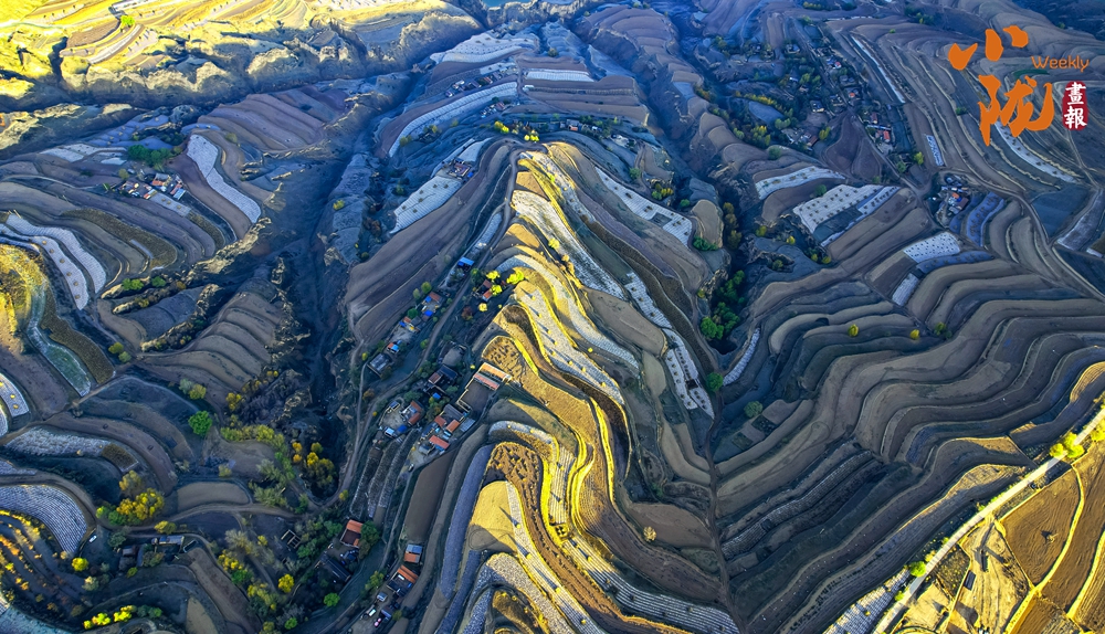 萬畝梯田錯落有致,層層彎曲盤繞,從高空俯瞰猶如大地“指紋”。當(dāng)?shù)亟?jīng)過多年的小流域治理,昔日的荒山禿嶺,今日滿目綠意盎然。那些蜿蜒曲折的梯田線條猶如畫家筆下的抽象作品,充滿了韻律感和節(jié)奏感。尤其是在清晨或傍晚時分,柔和的光線將梯田勾勒得更加立體,光影交錯之間,每一幀畫面都像是一張精美的攝影作品。