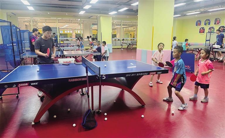 國芳G99一家乒乓球培訓(xùn)機(jī)構(gòu)內(nèi)每張球桌前都有教練指導(dǎo)學(xué)員練習(xí)。“暑期班從7月10日持續(xù)至8月24日,針對零基礎(chǔ)學(xué)員推出一對一火箭課培訓(xùn)。目前,教練時段全滿員,報班需要提前預(yù)約。”該機(jī)構(gòu)負(fù)責(zé)人介紹,機(jī)構(gòu)共推出苗子班、啟蒙營、基礎(chǔ)營等5種班型,按年齡和水平劃分,價位為1480元至2980元。4至6歲孩子可參加一對多的苗子班和啟蒙營,大一些的孩子則可參加基礎(chǔ)營、提高營進(jìn)行對打訓(xùn)練。