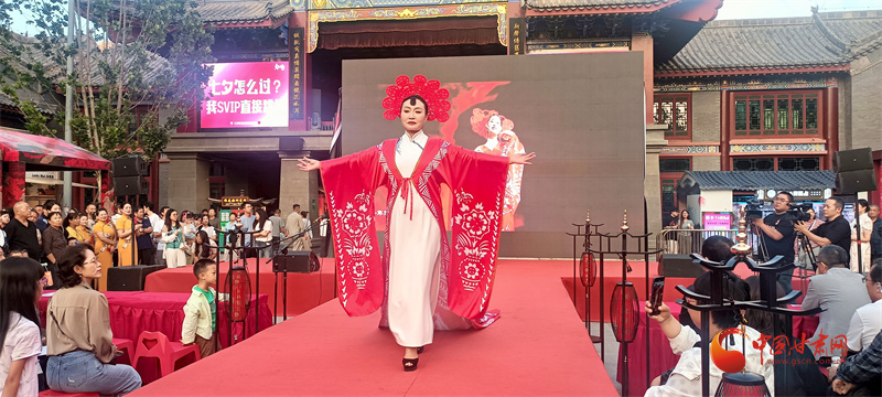 街舞《愛(ài)的節(jié)拍》則將現(xiàn)代元素與七夕的浪漫相結(jié)合,活力四射的舞蹈點(diǎn)燃了現(xiàn)場(chǎng)氣氛。沉浸式旗袍大秀中,模特們身著典雅旗袍,邁著優(yōu)雅步伐,展示了東方女性的柔美與魅力,贏得陣陣掌聲。鼓子表演《蘭州眉戶(hù)賣(mài)水》更是讓觀眾領(lǐng)略到了地方特色文化的魅力,其獨(dú)特的唱腔和韻味令人陶醉。