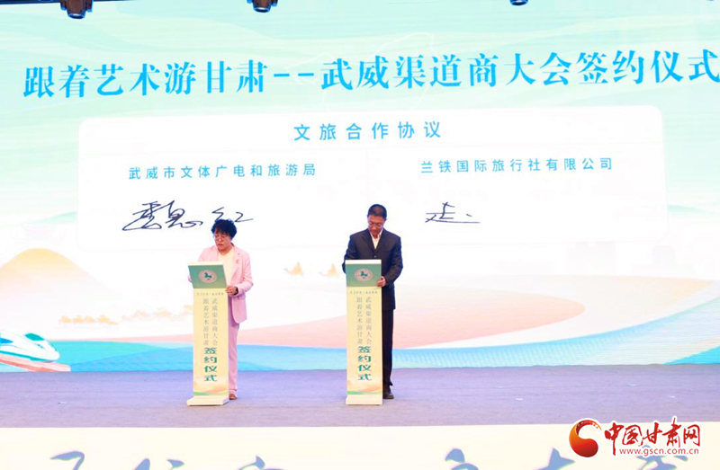 隨后舉行集中簽約儀式。武威市文體廣電和旅游局分別與中國(guó)旅行社協(xié)會(huì)鐵道旅游分會(huì)、甘肅蘭鐵國(guó)際旅行社有限公司簽署合作協(xié)議。