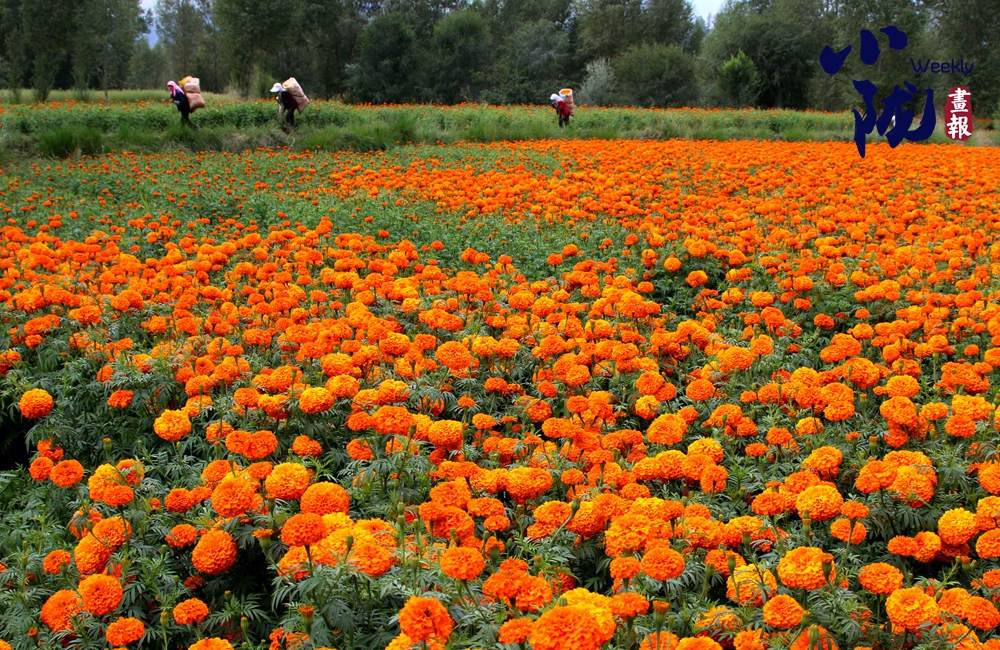 金黃的萬壽菊低垂著頭,仿佛是在向大地母親致謝,感謝她給予的滋養(yǎng)與庇護(hù)。農(nóng)人們穿梭其間,臉上洋溢著滿足與幸福的笑容,他們的汗水在這一刻得到了豐厚的回報(bào)。