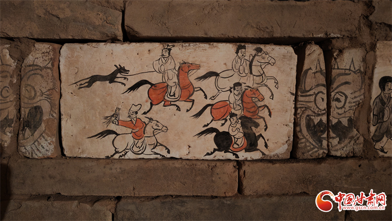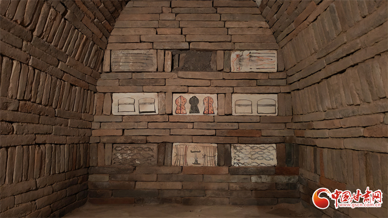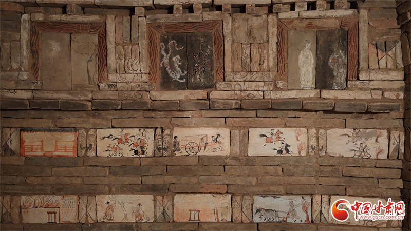 高臺(tái)縣魏晉壁畫墓,位于駱駝城東南5公里處的戈壁臺(tái)地,該墓曾兩次被盜,90年代后期由甘肅省文物考古研究所與高臺(tái)縣博物館實(shí)施搶救性清理。其中,100多塊彩繪畫像磚成為學(xué)界焦點(diǎn)。