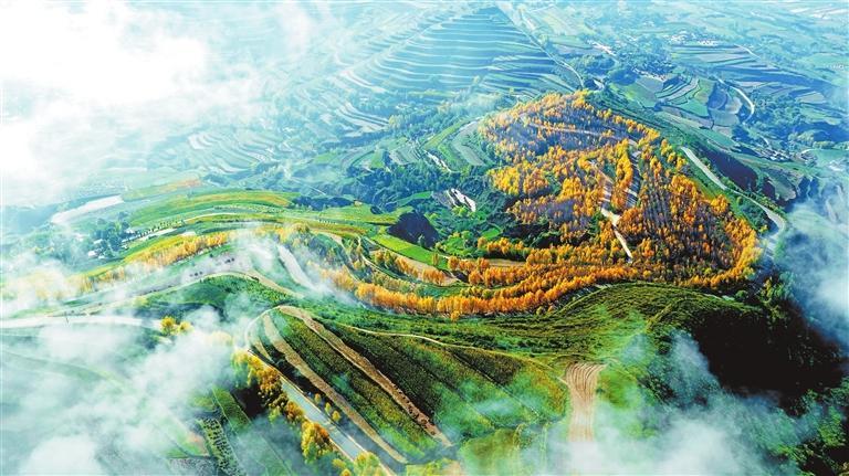 秋日的隴西縣柯寨鎮(zhèn)虎家屲村,云霧似輕紗裹滿山巒,村落與林帶隱入煙靄之間——黃土高原上世代耕耘出的“大地藝術(shù)”,正將自然意趣與煙火溫情,暈染成一幀秋日的水墨詩(shī)行。