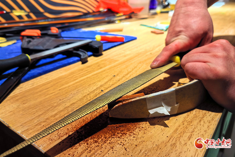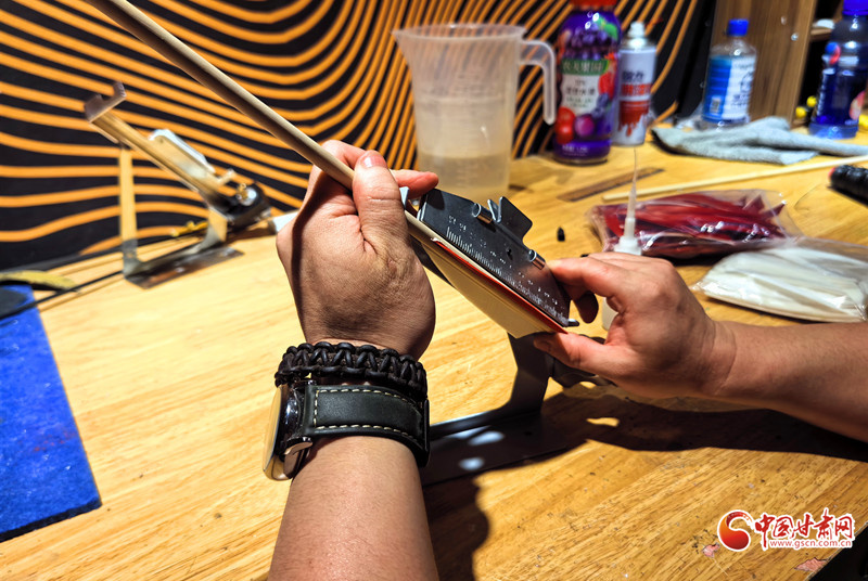 2011年,還是大學(xué)生的謝建戈在百度貼吧結(jié)識了山東臨沂“高氏傳統(tǒng)弓箭”非遺傳承人高超。囊中羞澀的他提出“先貨后款”,高超被這份赤誠打動(dòng),寄來第一套玻片弓料。一個(gè)月后,生活費(fèi)一到賬,他第一時(shí)間把錢打了過去——網(wǎng)絡(luò)那端的高超從此記住了這個(gè)甘肅小伙。2012年,他做出人生第一把玻片弓。