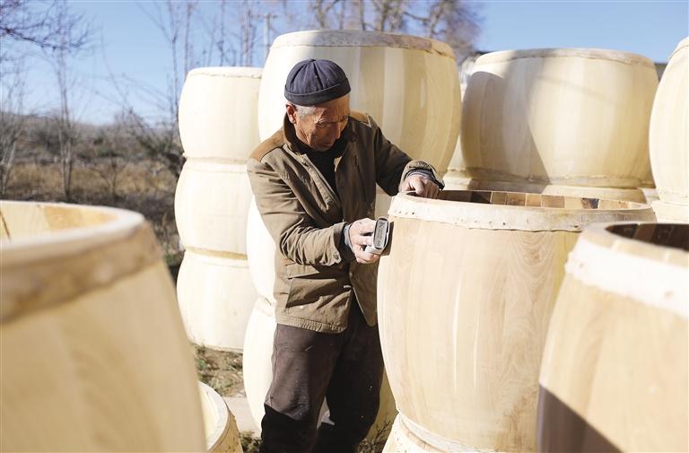 冬日農(nóng)閑時節(jié),在甘肅省定西市安定區(qū)鳳翔鎮(zhèn)北廿鋪村,牛皮鼓手工制作藝人利用晴好天氣趕制訂單牛皮鼓,供應(yīng)市場。該村每年可制作各類牛皮鼓3000余面,牛皮鼓手工制作涵蓋選材、解板、刨制鼓腔、蒙皮、釘釘?shù)榷嗟拦ば颍俳?jīng)數(shù)天晾曬和反復(fù)調(diào)試才能最終制成。牛皮鼓是我國的傳統(tǒng)打擊樂器,在西北地區(qū)用于民間社火表演等活動。