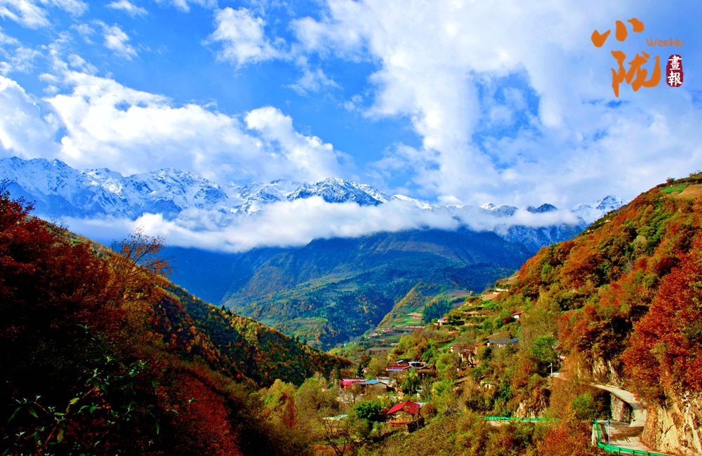 在溝谷深處,依山而建的寨房點綴在斑斕色彩之中。藍天白云、炊煙裊裊,門前屋后樹木成景……一切都是最貼近生活的模樣。