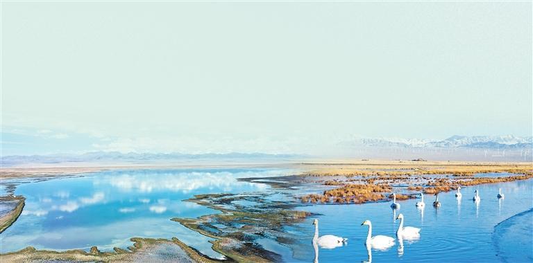 在嘉峪關(guān)市新城草湖國(guó)家濕地公園,美麗的冬景、自由游弋的天鵝,構(gòu)成一幅旖旎的生態(tài)畫(huà)卷。