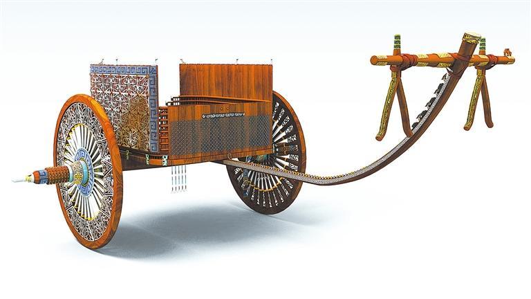 馬家塬西戎墓葬出土的戰(zhàn)國(guó)馬車復(fù)原效果圖。