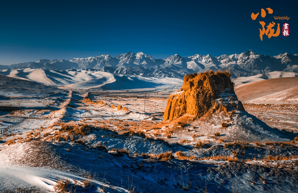 潔白的馬牙雪峰在遠(yuǎn)處閃爍著冷冽的光芒,巍峨而孤高;而眼前,明漢長城的夯土墻體在陽光下泛著溫暖的土黃,宛若大地的血脈。這一冷一暖在此相遇——一端是自然雕琢的冰晶詩篇,一端是人類寫就的黃土史詩,共同構(gòu)成一幅跨越千年、連接天人的壯闊畫卷。