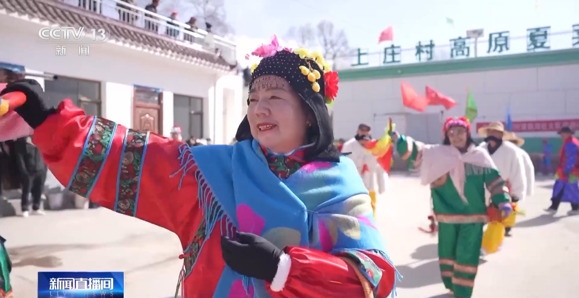 當?shù)乇硌莸纳缁鸾旭R銜山秧歌,是甘肅省級非遺,一種以歌舞等民間藝術形式演繹本地農耕文化的活動。上莊村外出務工的村民較多,村里的社火表演已經中斷十多年。這次村里提出重啟社火,村民們熱情高漲、踴躍報名。