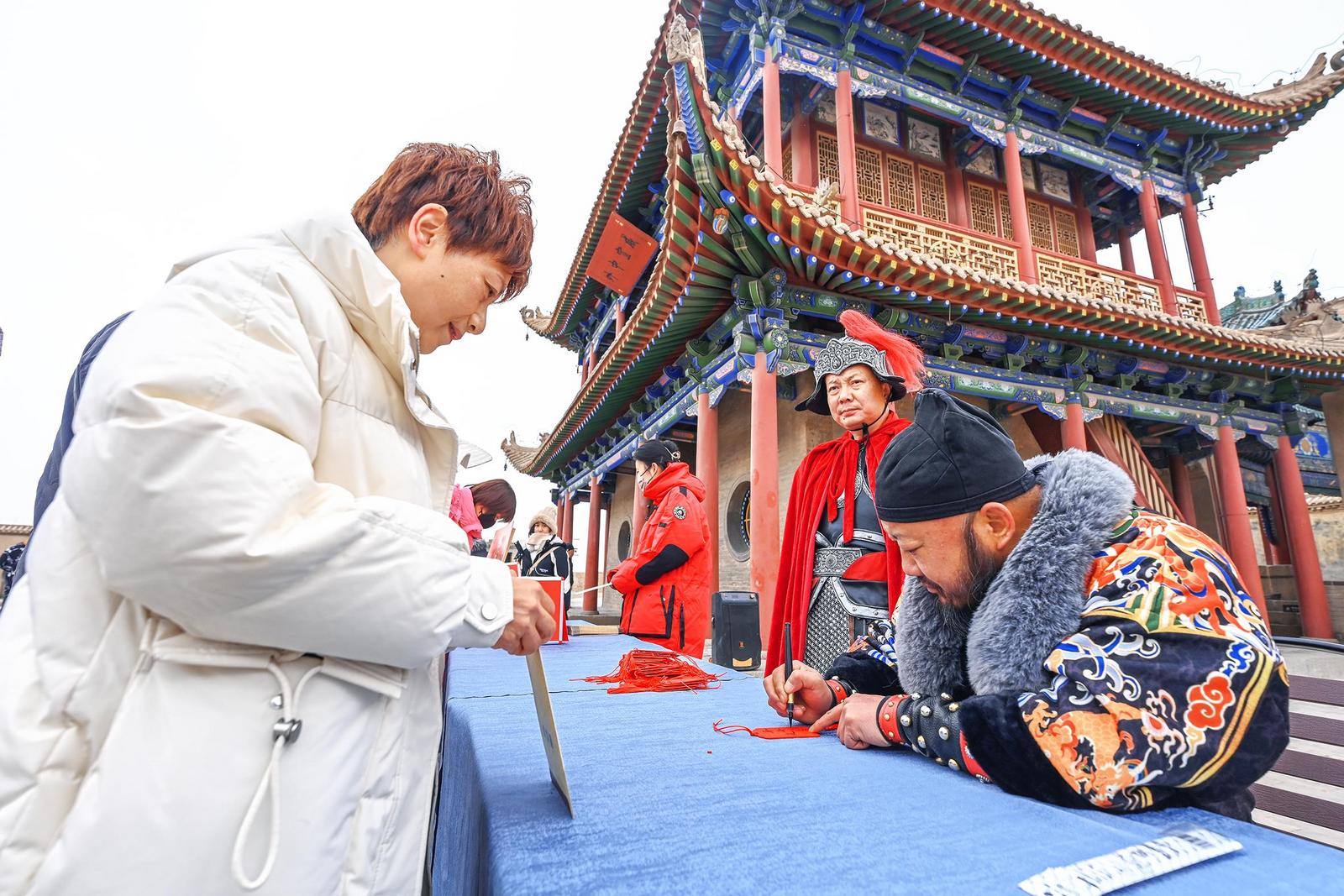 “雄關(guān)迎瑞 歡度新春”。春節(jié)假期,嘉峪關(guān)關(guān)城景區(qū)組織開(kāi)展尋寶探秘、關(guān)長(zhǎng)賜福等多項(xiàng)互動(dòng)活動(dòng),在歡聲笑語(yǔ)中為游客送上新春祝福。(記者 徐霏 李巍 攝)