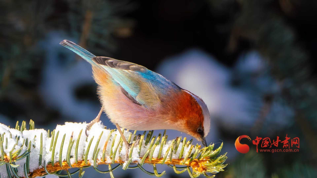 中國(guó)甘肅網(wǎng)2月26日訊(西北角·中國(guó)甘肅網(wǎng)記者 張慧雅 通訊員 焦方寧 王東琳 張宏)春日里,朔風(fēng)卷寒,瓊英漫舞。冷空氣過(guò)境后,祁連山區(qū)被厚厚的白雪層層疊疊地包裹,千峰萬(wàn)壑在陽(yáng)光下閃耀著清冷的銀輝,仿佛天地間所有的色彩都被收斂,只留下一片浩渺蒼茫的純白世界。暖陽(yáng)下的祁連山林靜極了,靜得能聽(tīng)見(jiàn)雪粒從松針上輕輕滑落的細(xì)碎聲響。在清寂蒼莽的林海間,總有一抹靈動(dòng)色彩暈染在蒼山翠柏之間,為寒冷的山野添得幾分鮮活生氣。這抹亮色,定格了鳳頭雀鶯雪中覓食的珍貴瞬間。這些幀幀如畫的影像,既鐫刻下高山珍禽于自然環(huán)境中求生的智慧,也繪就出祁連山生態(tài)系統(tǒng)獨(dú)有的生命力與堅(jiān)韌底色。